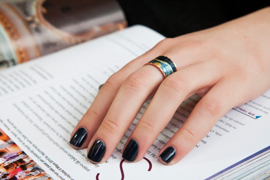 An elegant oval holds a 3pt diamond that seems to float on the finger. Bold and delicate at the same time - minimal with a bit of surrealist magic.